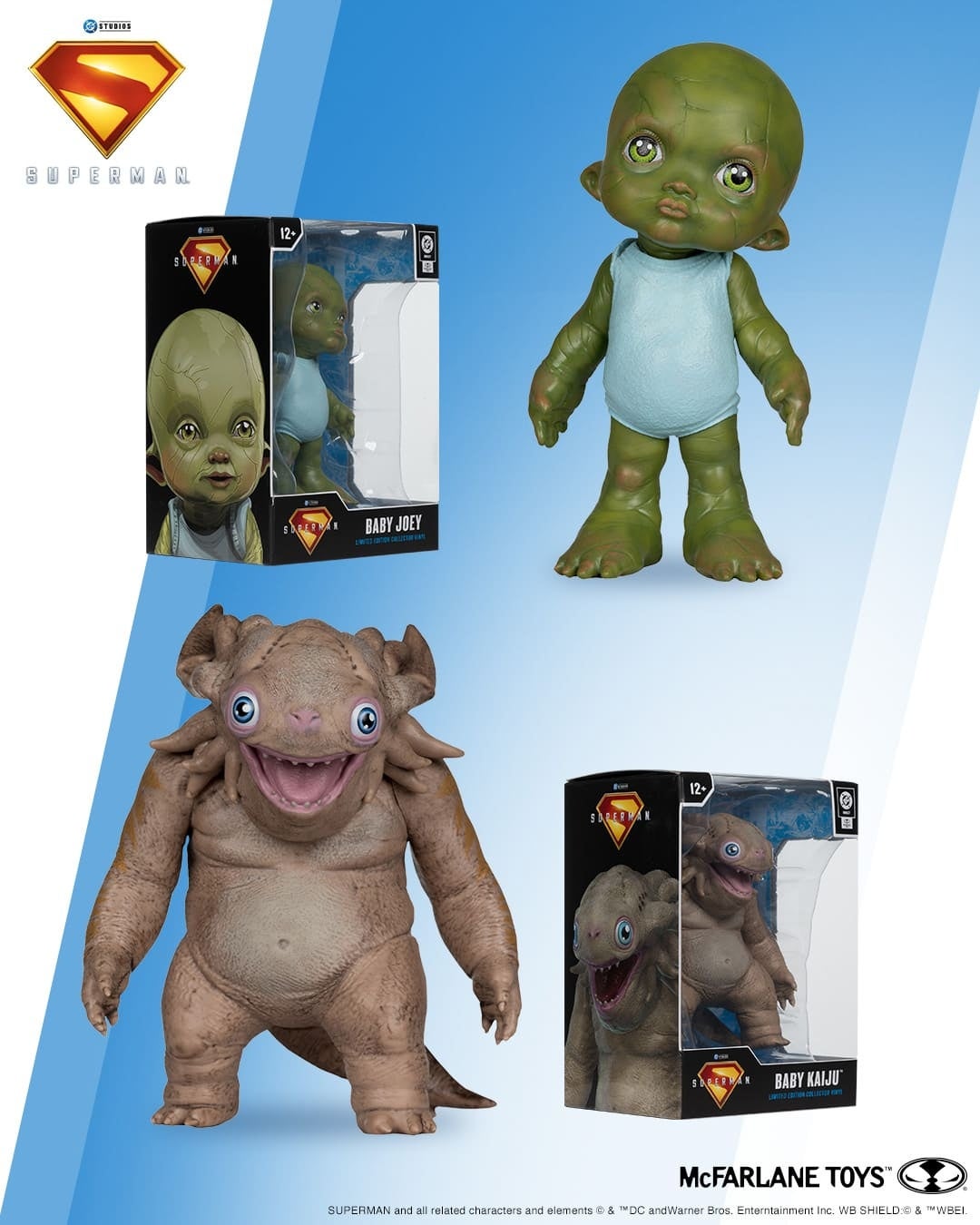 マクファーレン・トイズの「DCダイレクト」ブランドが展開するコレクター・ビニールフィギュアに、映画『スーパーマン』に登場するベイビージョーイとベイビーKAIJUの2種がラインナップ。