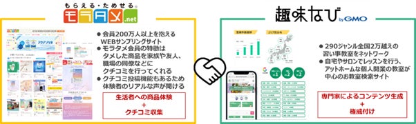 『モラタメ』は、会員ユーザーが新商品を手軽に「もらって試せる」サンプリングサービスとして、多くの生活者とメーカーをつないできました。一方、『趣味なび byGMO』は全国17,600人以上の先生ネットワークを通じて、趣味・習い事などの体験機会を提供するプラットフォームとして成長しています。 今回の協業により、商品を教室の先生に使ってもらうことで、より専門性の高い体験型サンプリングが実現し、高い商品理解を踏まえたユーザーへの発信を行うことが可能になります。
