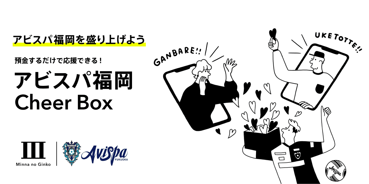 「アビスパ」の4文字を含む名前を付けたCheer Boxにお金を預けていただくことで、応援する皆さまに代わって、みんなの銀行がCheer Box預金残高の1%をアビスパ福岡にお届けします。