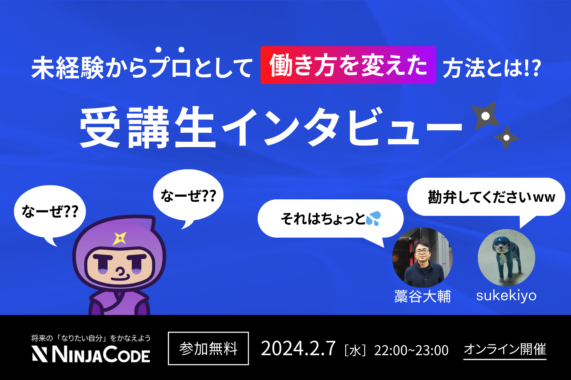 【2/7(水) 無料ウェビナー】プログラミングのオンライン学習サービス『忍者CODE』が副業・フリーランス志望の方向けに開催!【ラグザス/RAXUS】