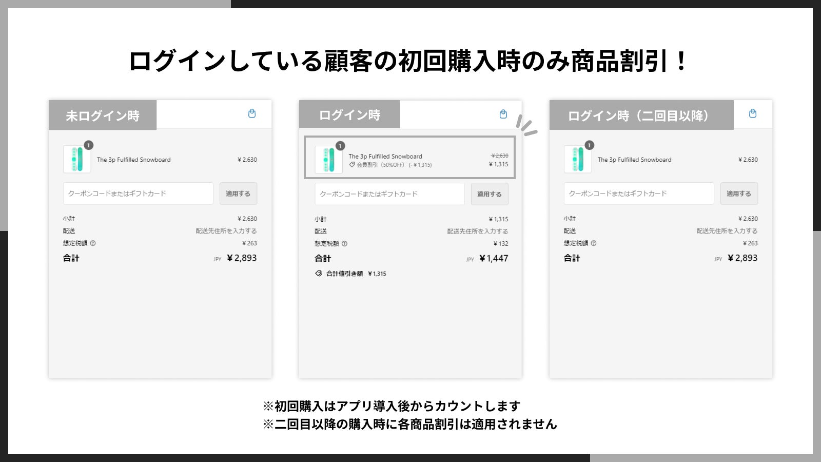 初回ログイン時の購入で商品割引できる Shopify アプリ「シンプル会員初回商品割引|お手軽初回ログイン商品セール設定」をリリース
