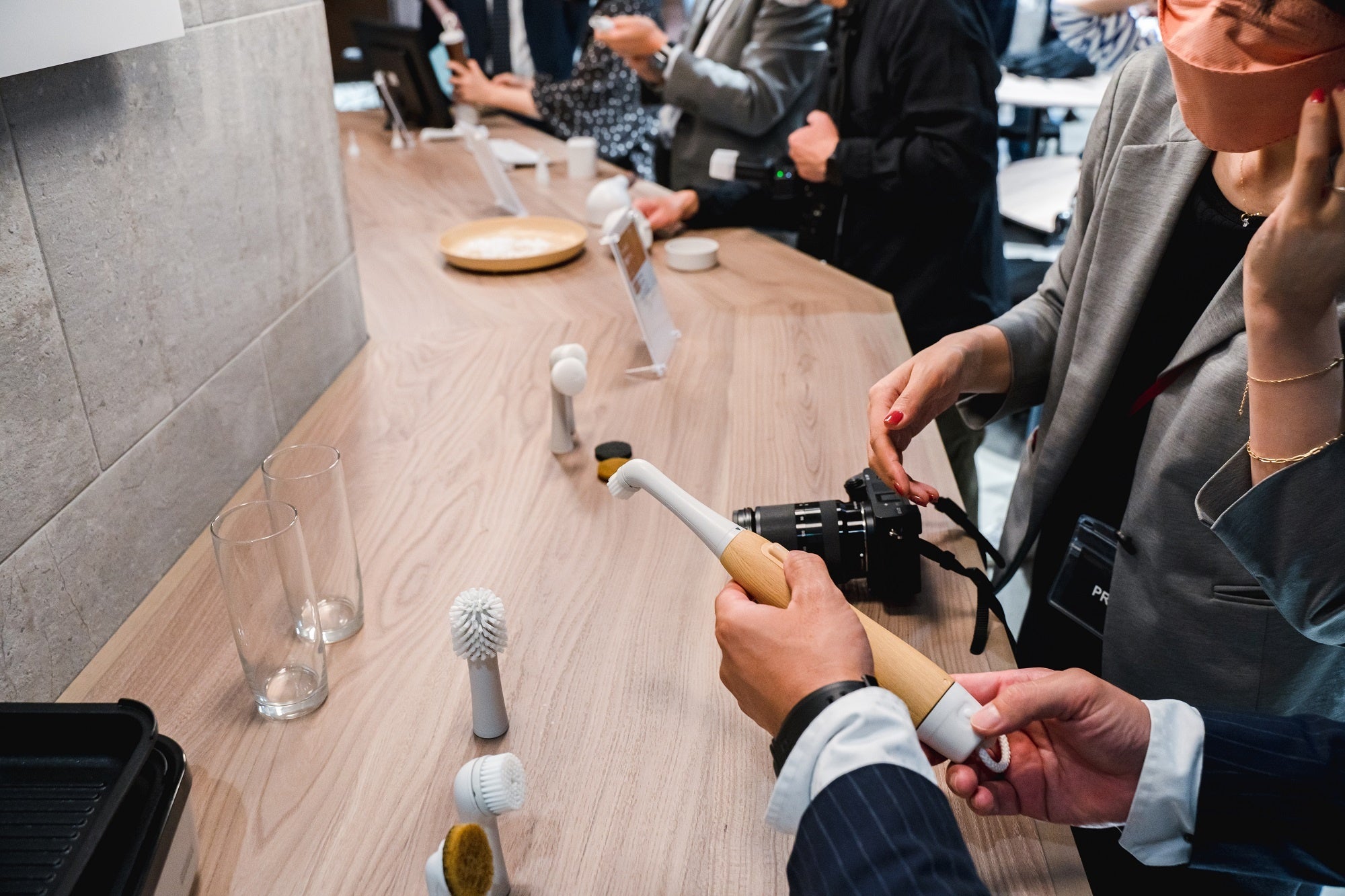 実際に手に取ってお試しいただきながら各製品の説明を行うと、「2台目の冷凍庫は、冷凍食品の保存にピッタリ!」「充電式バイブレーションモップは、ウッドデッキの掃除や子供の落書き消しに使いたい!」「コードレス電動ブラシは上履きも洗えるのは便利!」など、ママ目線からの貴重な意見が多数挙がりました。