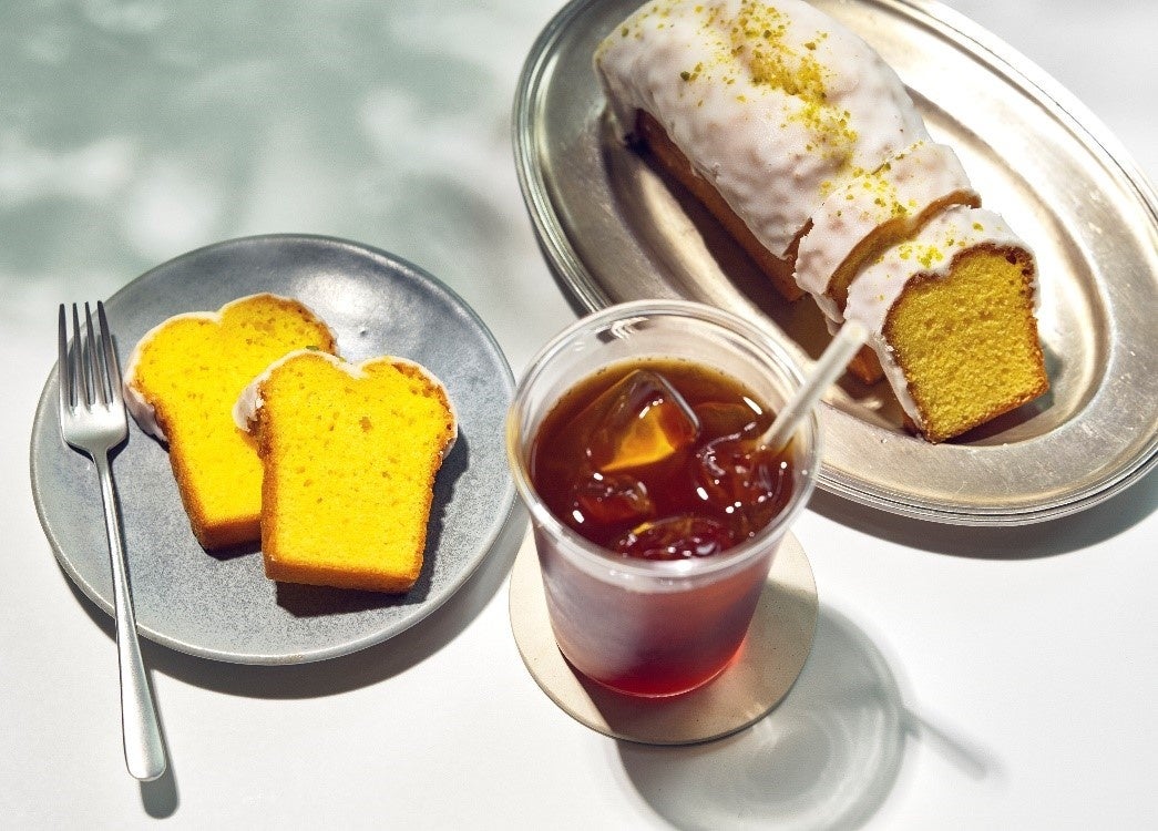 『サマーブレンド2024』に合わせるスイーツは、濃厚で鮮烈なレモンの香り、しっとりとした口当たりが特徴の「レモンケーク」です。アイスコーヒーと合わせると、ケーキの上にかかっているレモンの甘酸っぱい風味豊かなアイシングが溶け、瑞々しいフルーティーな風味が口の中いっぱいに広がります。余韻にコーヒーのハーブの風味がほのかに香り、印象の変化が楽しめるコーヒーマリアージュ体験を提案します。