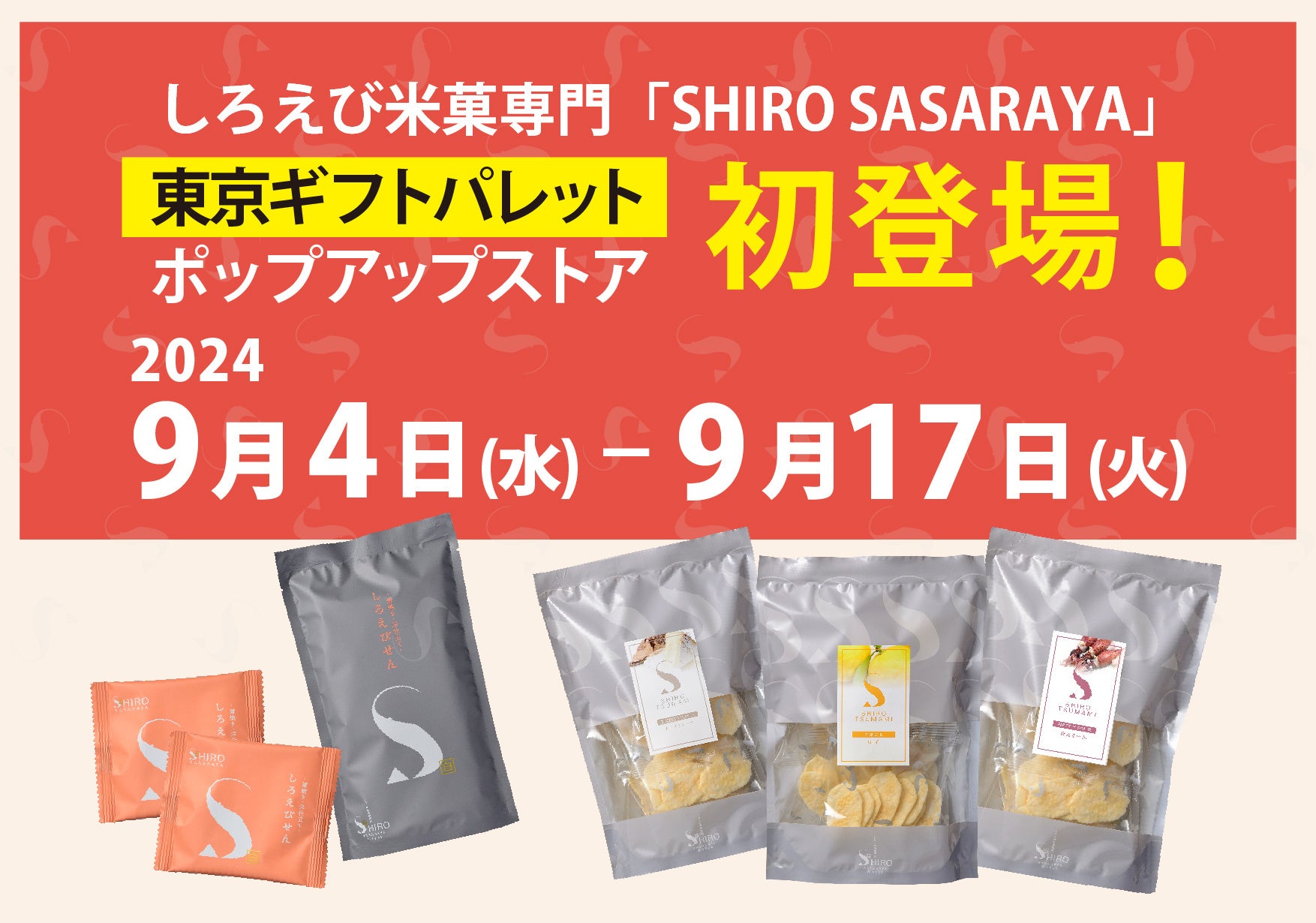 創業100年の老舗米菓メーカー日の出屋製菓産業株式会社(本社:富山県南砺市、代表取締役社長:川合 洋平)の新ブランド、しろえび米菓専門「SHIRO SASARAYA」は、東京駅一番街・東京ギフトパレットにて9月4日(水)~9月17日(火)の間出店いたします