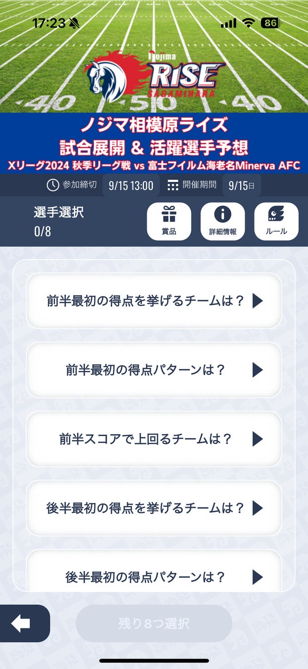 Xリーグ 2024 秋季リーグ第2節 ノジマ相模原ライズの試合展開&活躍選手予想をスポーツ予想アプリ「なんドラ」で開催!