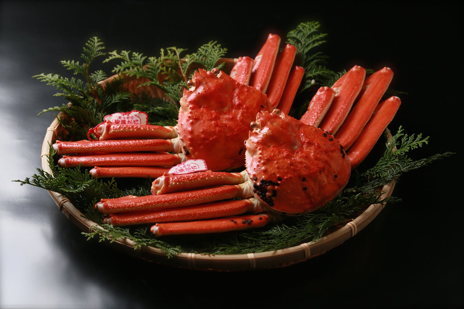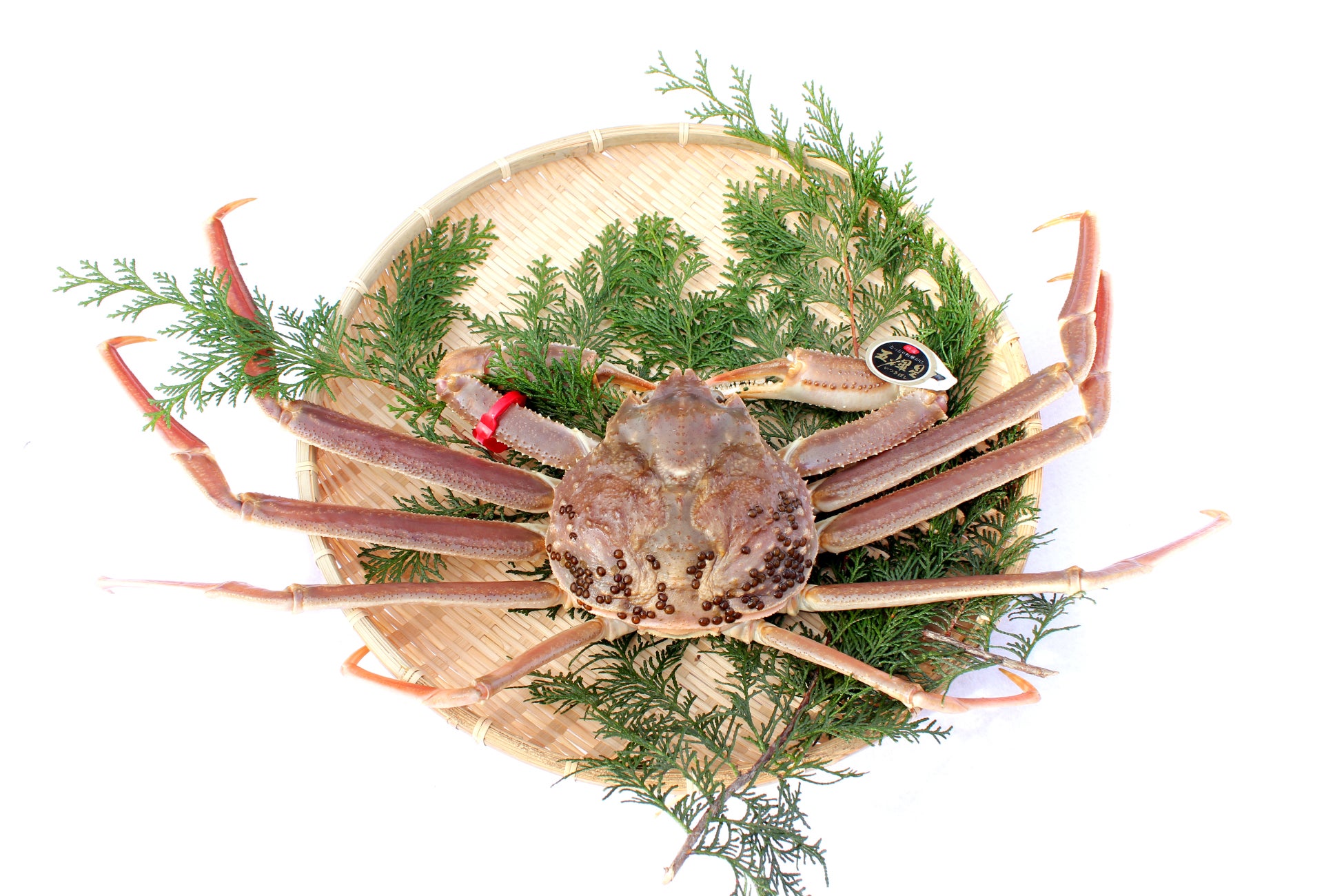松葉がには成長した雄のズワイガニの山陰地方における名称で、鳥取県を代表する冬の味覚の王様です。毎年11月6日から3月20日までの約5か月間だけ漁が解禁されます。毎年注目が集まる「特選とっとり松葉がに 五輝星(いつきぼし)」は、大きさ・重さ・形・色合い・身入りともに5つの厳しい基準が設けられ、目利き人によって選定されており、2019年度の初競りでは史上最高値の1枚500万円の価格がつけられ、その後「競りで落札された最も高額なカニ」としてギネス世界記録を更新したことで大きな話題となりました。