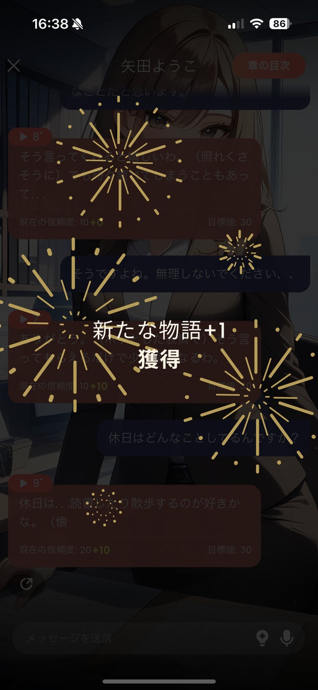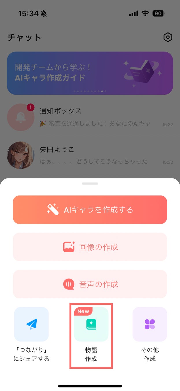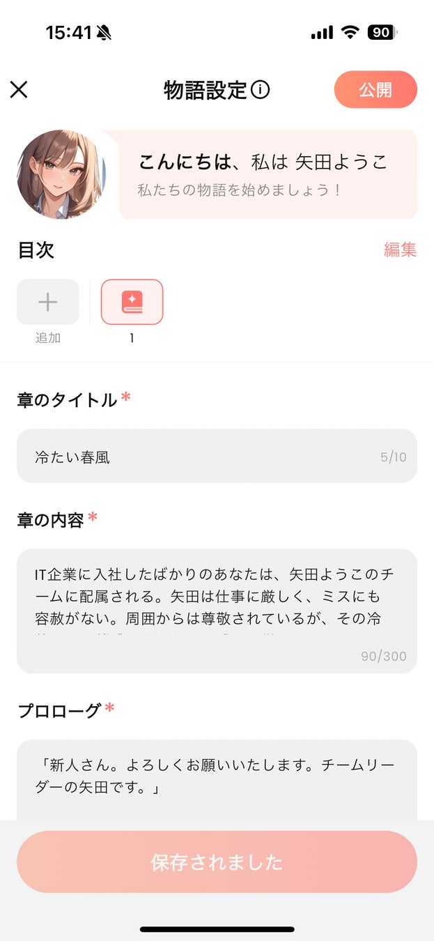 「物語機能」は、AIキャラの物語を章仕立てで作成・体験できる機能です。