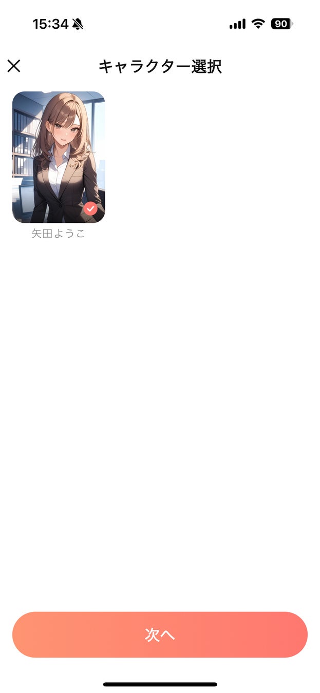 まず、ホーム画面の「+」を押して、メニューにある「物語作成」をタップし、物語に登場させるキャラクターを選択。