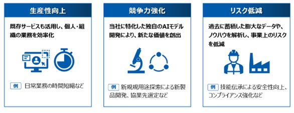 当社は2023年5月よりグループ全体での積極的な生成AI活用を支援し、業務効率化を進めてきました。今後は生産性向上に加え、上記のような競争力強化や事業上のリスク低減に生成AIを活用していきます。
