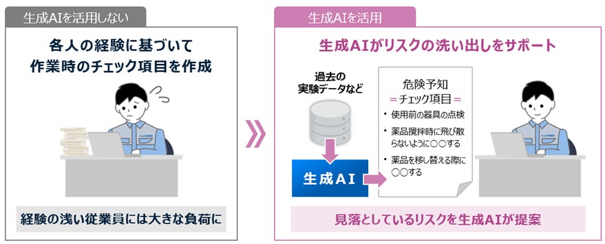従来は個人の経験をもとにリスクを予知していましたが、過去事例のデータを読み込ませた生成AIを活用することで、経験の浅い従業員でも抜け漏れなくリスクと対応策を洗い出し、安全性と効率性を高めるとともに、技術伝承を加速できるようになりました。