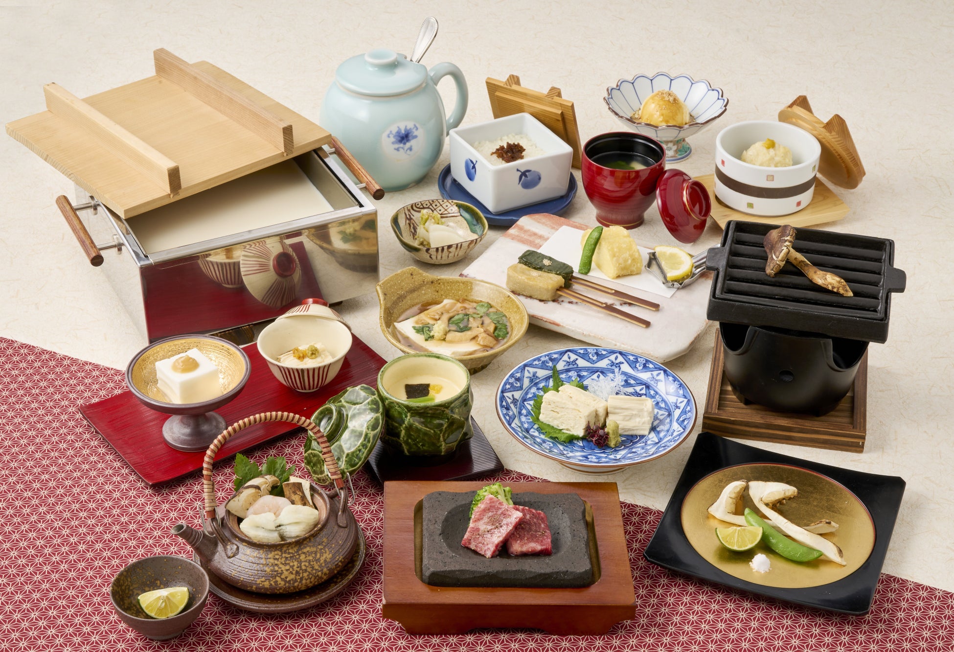 専門店ならではの湯葉と豆腐料理、創業以来愛され続ける名物とうふしゅうまいや生麩田楽、湯葉揚げに加え、秋の香りを存分にお楽しみいただける松茸の土瓶蒸しやふく福豆冨 松茸あんをご用意しました。五感で秋の訪れを感じていただけます。