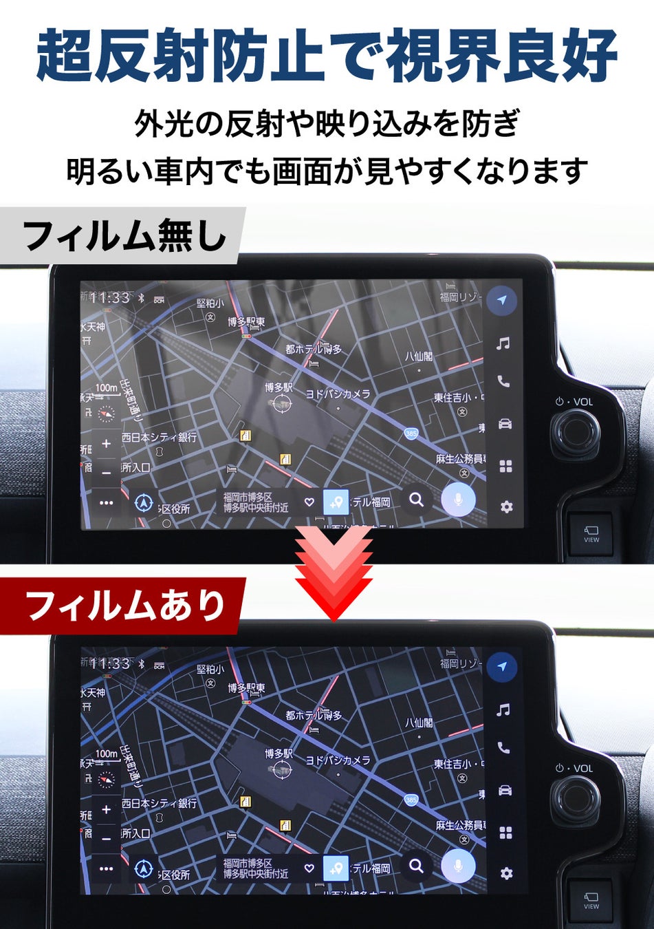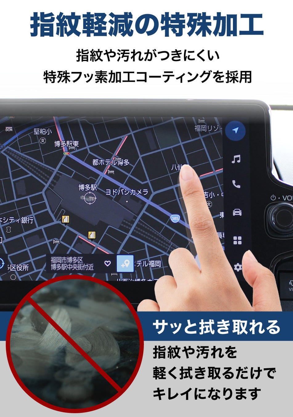 新型シエンタ 10.5インチディスプレイオーディオ用画面保護フィルム。カーナビ守る君【超反射防止タイプ】発売!傷・指紋防止にも役立つさらさら質感。貼りやすい三分割タイプなので苦手な方にもおすすめです。