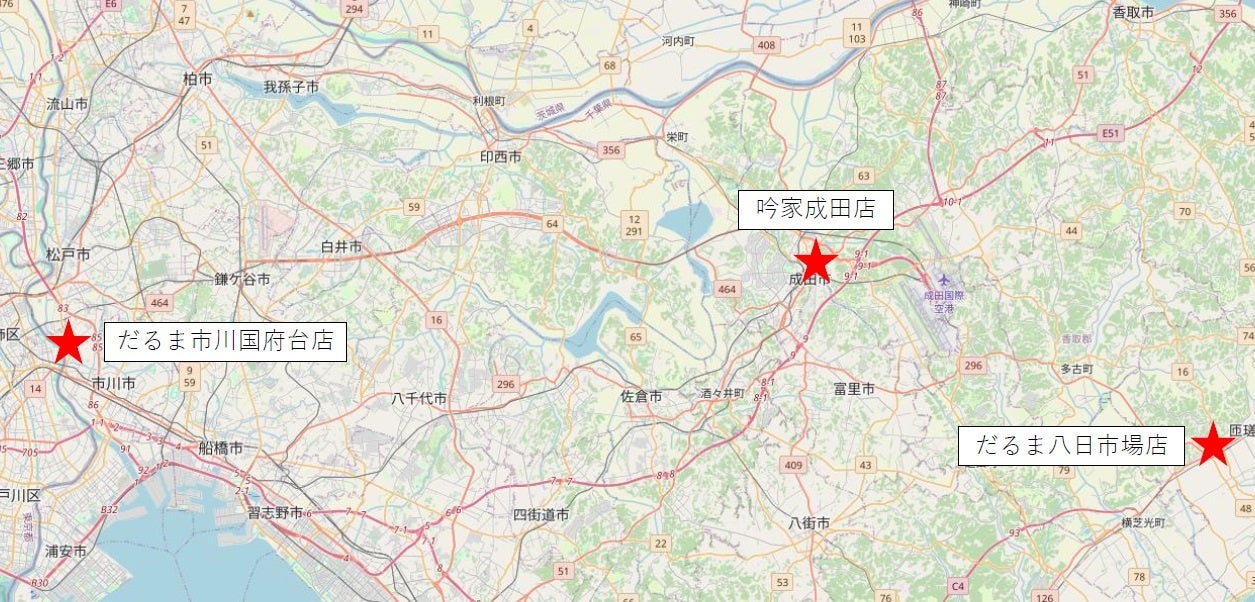 だるま八日市場店 だるま市川国府台店 吟家成田店