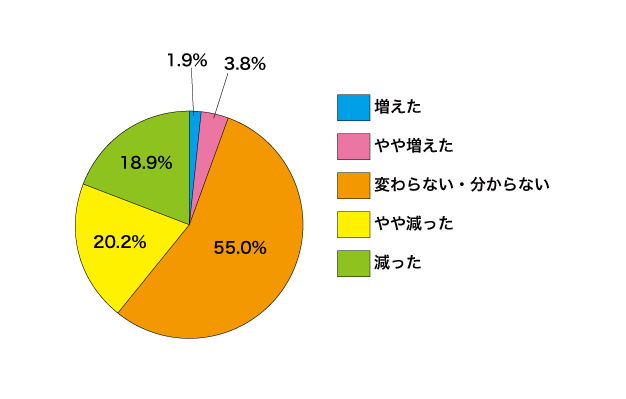 また収入に変化があったという方のうち、増えたと感じた方はごく少数で「収入減」を感じている方がやはり多いことが分かります。