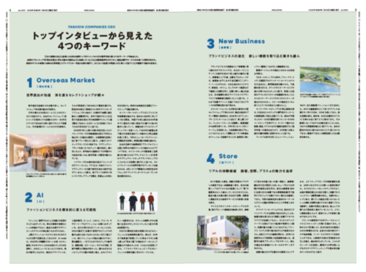 ファッション企業25社、ビューティ企業29社の計54社(55人)の経営トップのインタビューを掲載しました。