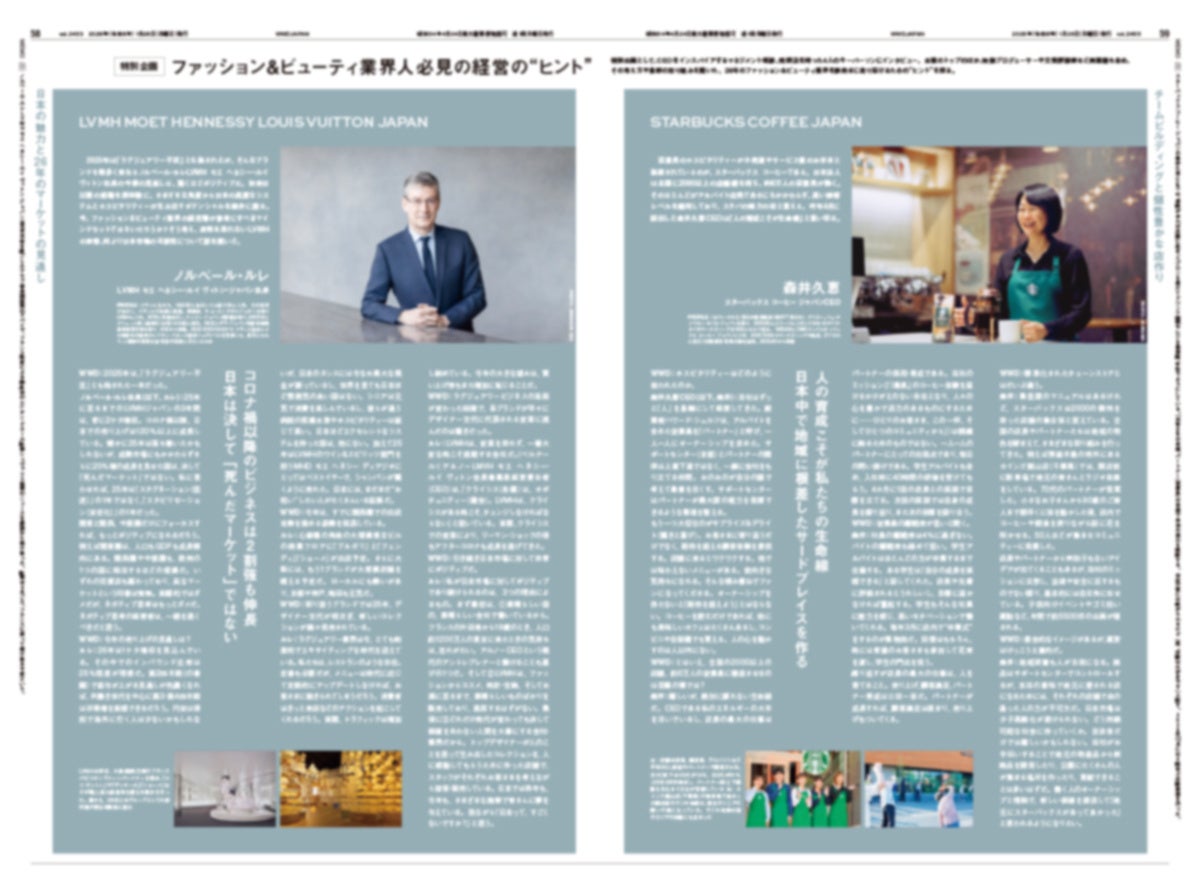 また、今回は新たな試みも実施。“CEOをインスパイアする特別インタビュー”として、LVMH モエ ヘネシー・ルイ ヴィトン・ジャパンのノルベール・ルレ社長、スターバックス コーヒー ジャパンの森井久恵CEO、Netflix コンテンツ部門の髙橋信一ディレクター、文芸評論家の三宅香帆さんに登場してもらったので、併せて要注目です。