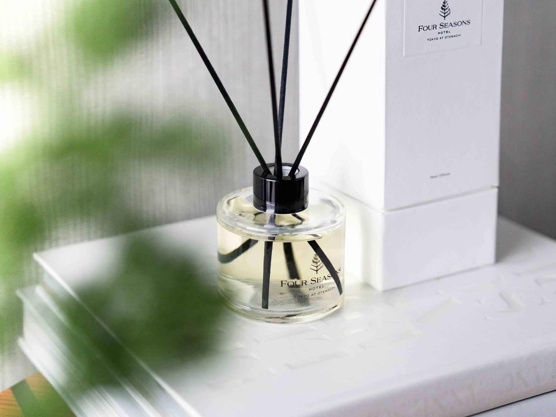 フォーシーズンズホテル東京大手町のエントランスに一歩足を踏み入れた瞬間に皆様をやさしく包むフォーシーズンズホテルの香りをご自宅でもお楽しみ頂けます。瑞々しい香りの中にアンバーの余韻で、癒されるひと時を。