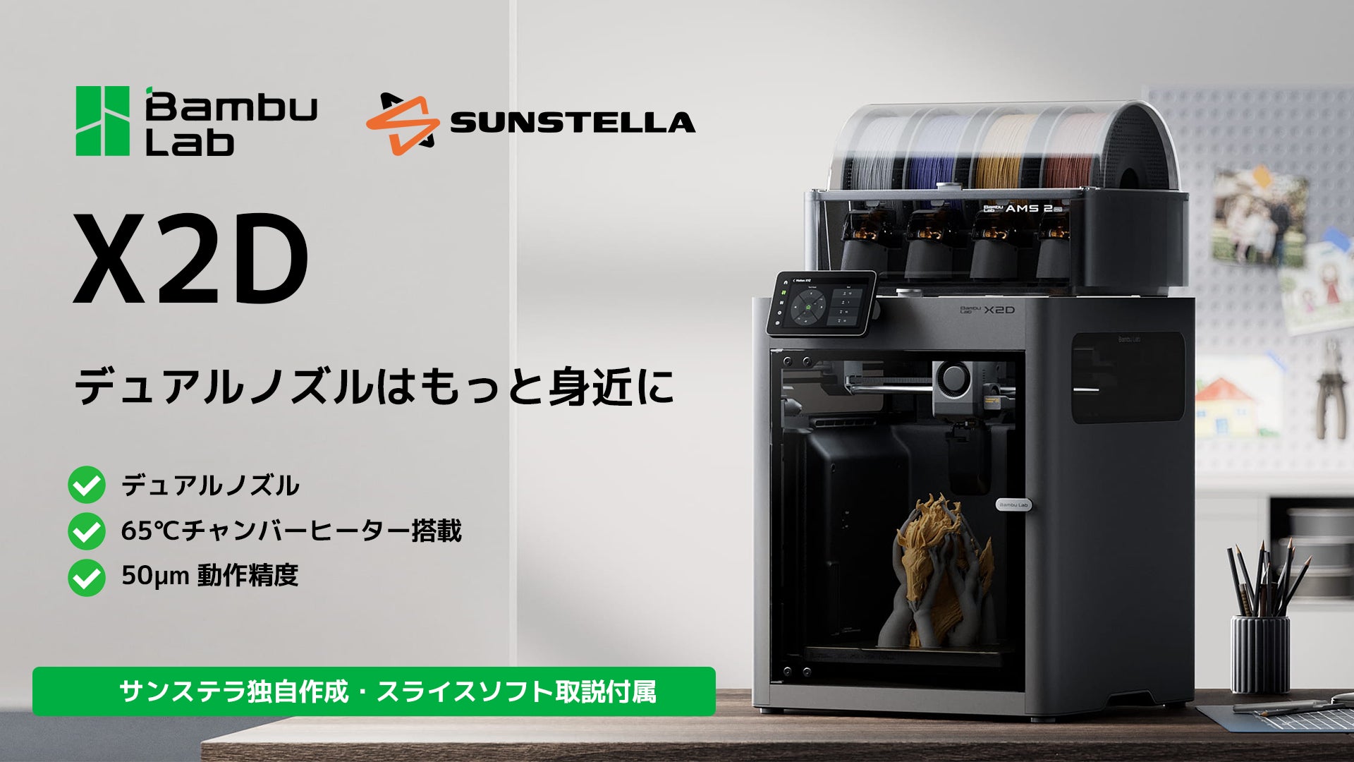 株式会社サンステラ(本社:東京都)は、Bambu Lab製の最新デュアルノズル3Dプリンター「X2D」の国内展開を開始いたしました。