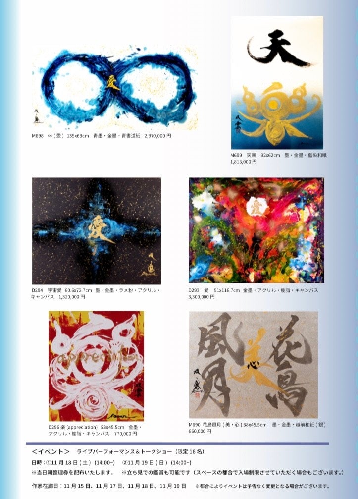 ※武田双雲先生の在廊日は11月15日(水)、17日(金)、18日(土)、19日(日)