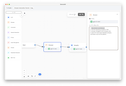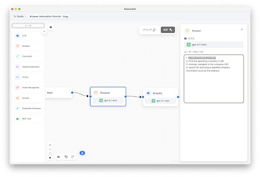 また、AIによるブラウザ自動操作が可能で、ワークフロー型かつブラウザ自動操作を行うAIエージェントとしては世界初のサービスです(特許申請中)。