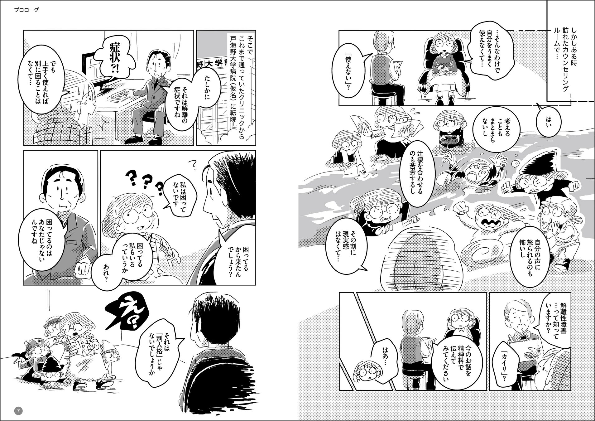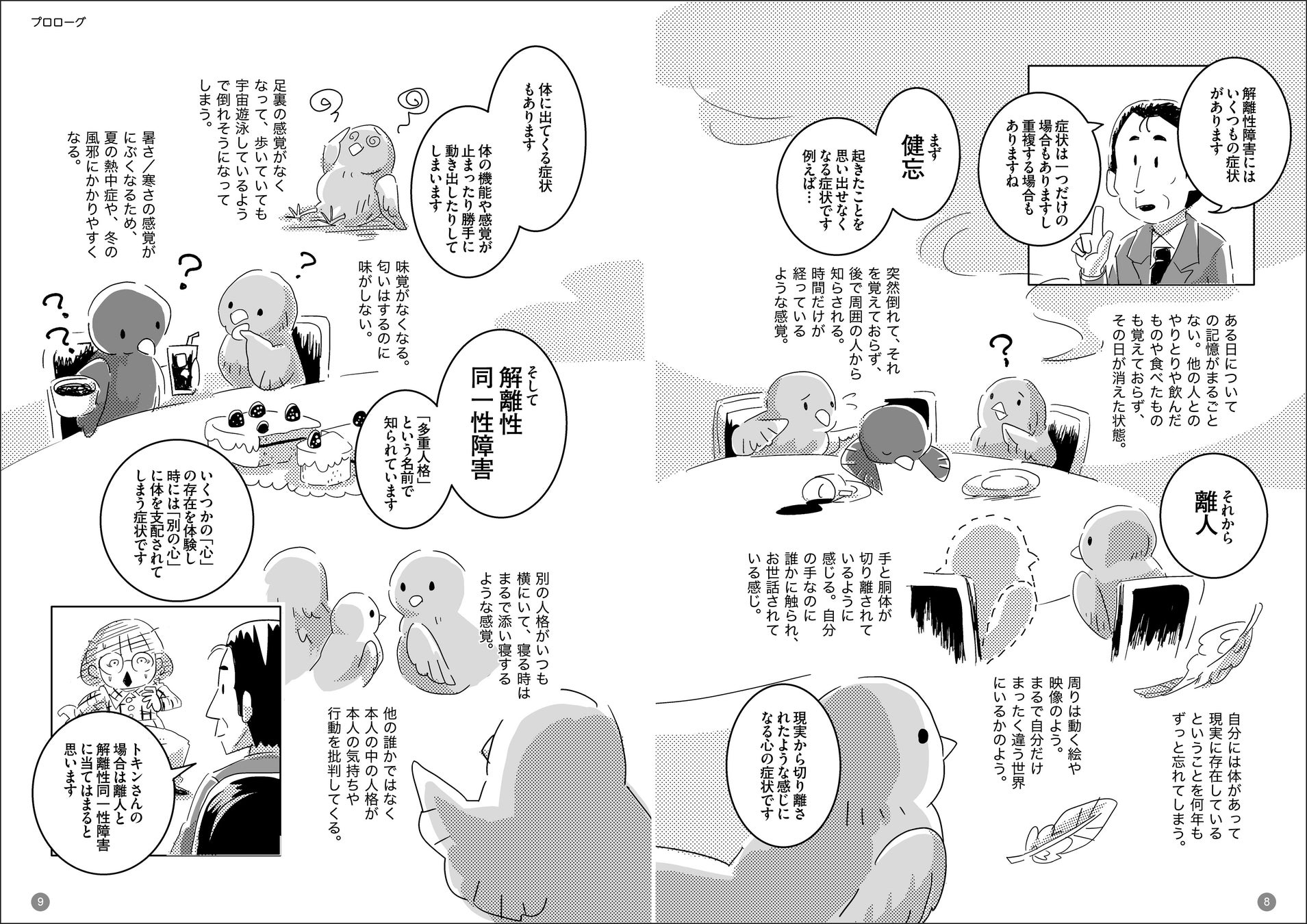 本作は、解離性障害の当事者である漫画家のTokinさんが、症状とともにサバイブする日々の記録とともに、SNSを通じて多くの当事者から集まった声をまとめたコミックエッセイです。