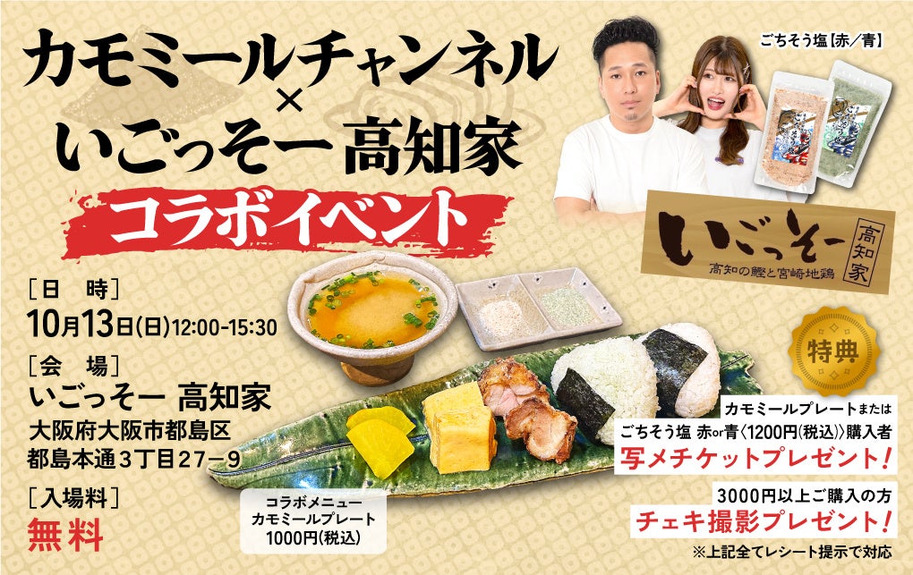 【会場変更のお知らせ】カモミールチャンネル×いごっそー 高知家と初のコラボおむすび『カモミールプレート』を10月13日(日)限定販売!!