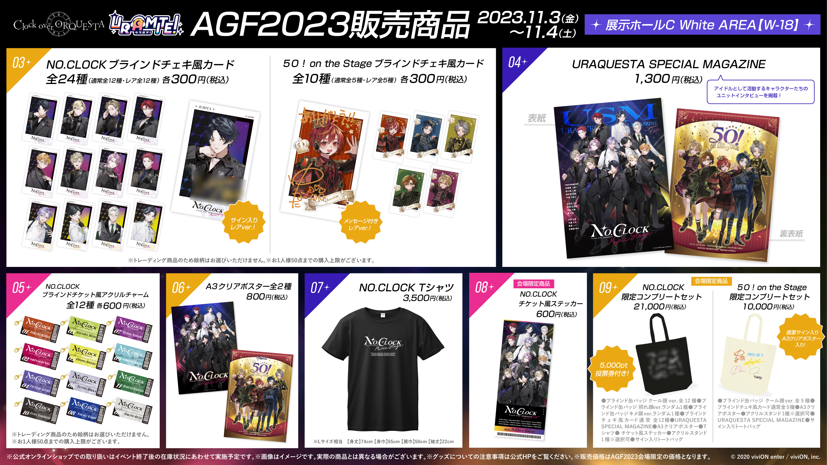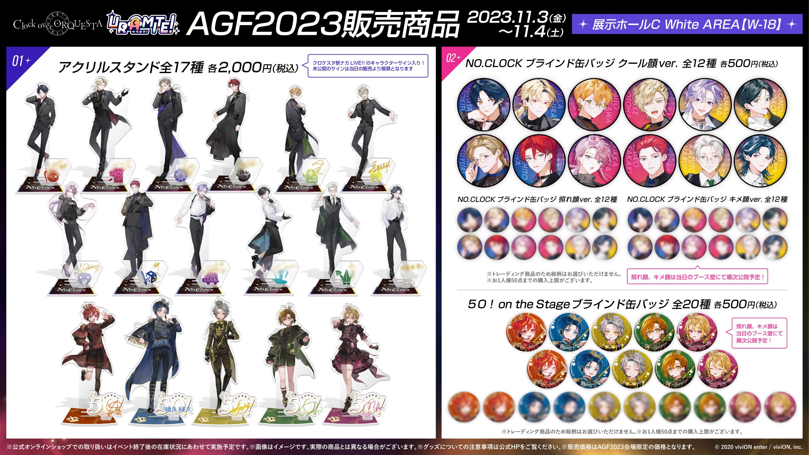 AGF2023の開催期間中、「viviON/クロケスタ(Clock over ORQUESTA)」ブースではお渡し会以外にも、グッズ販売や無料配布などの企画を展開します。