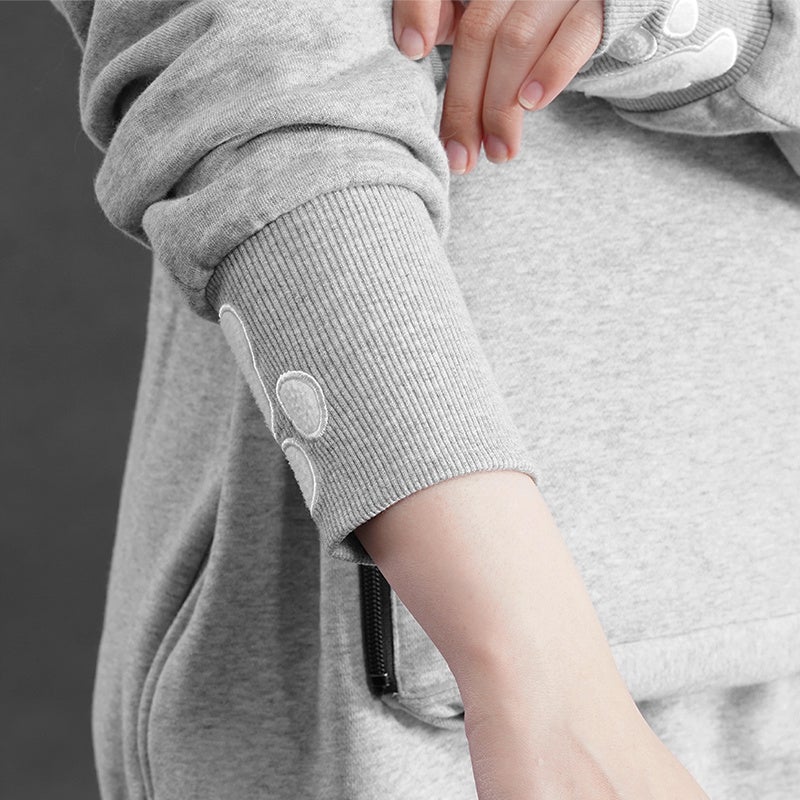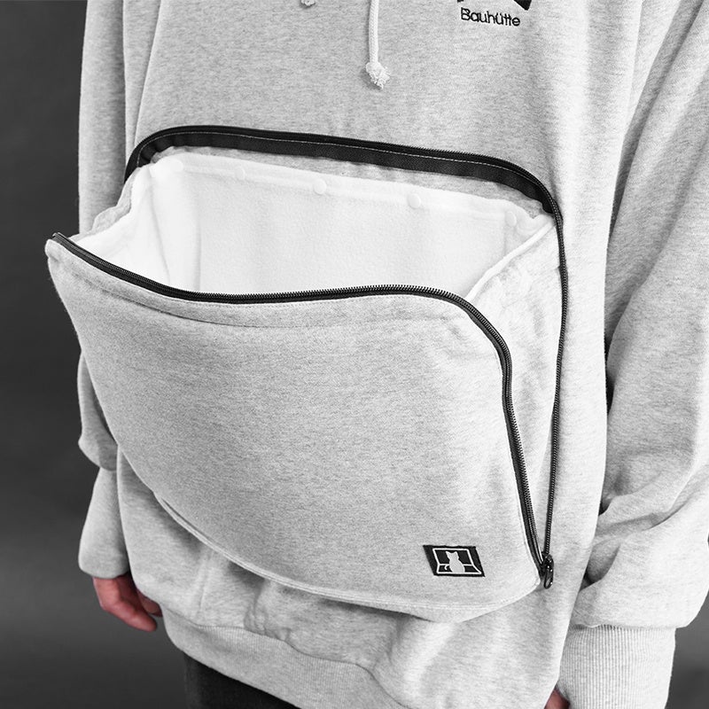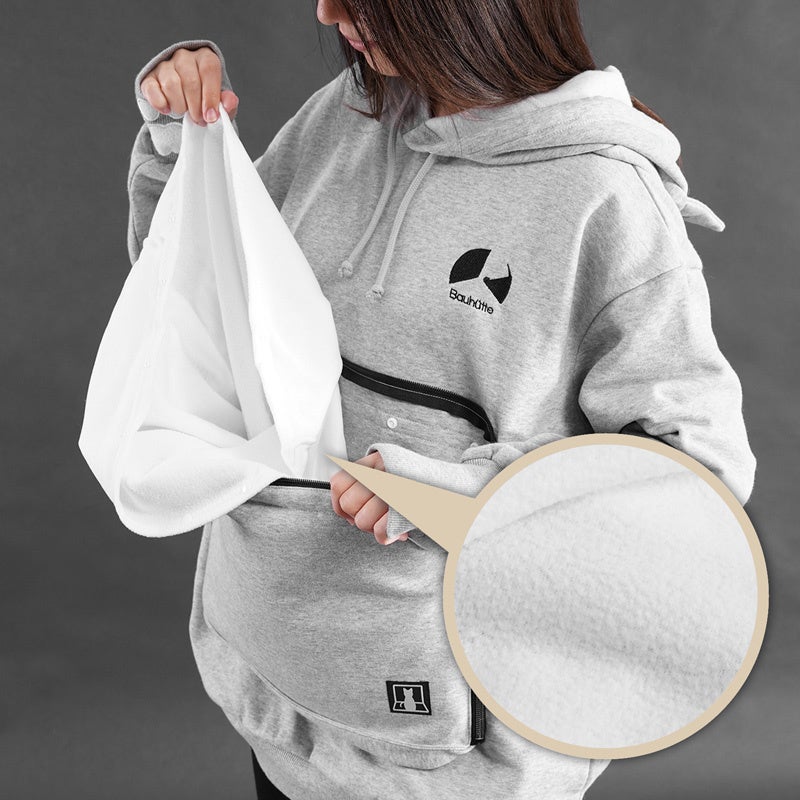 狭くてあたたかい所が大好きな猫を呼び寄せる、まるでカンガルーのようなお腹のポケット。猫好きの心をくすぐる、猫耳付きフード&袖口の肉球刺繍...。身も心も猫に寄り添って、互いのぬくもりを感じながら一緒にくっついていられるパーカーです。独自設計の自立型ポケットが、手で支えずとも猫を安定してホールド。液体状になった猫が膝の上からこぼれ落ちるのを防ぎつつ、空いた両手で自由に好きなことをして過ごすことができます。