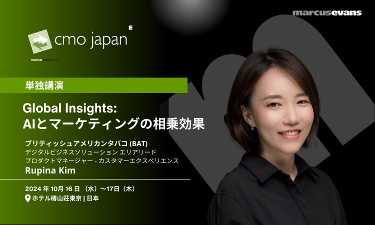 マーカス・エバンズ・イベント・ジャパン・リミテッド (本社: 英国/ 日本支社代表: 雪下 大輔、以下「マーカスエバンズ」) はマーケティング部門のビジネスサミット『CMO Japan Summit 2024』でのブリティッシュアメリカンタバコのRupina Kim氏の単独講演を発表しました。