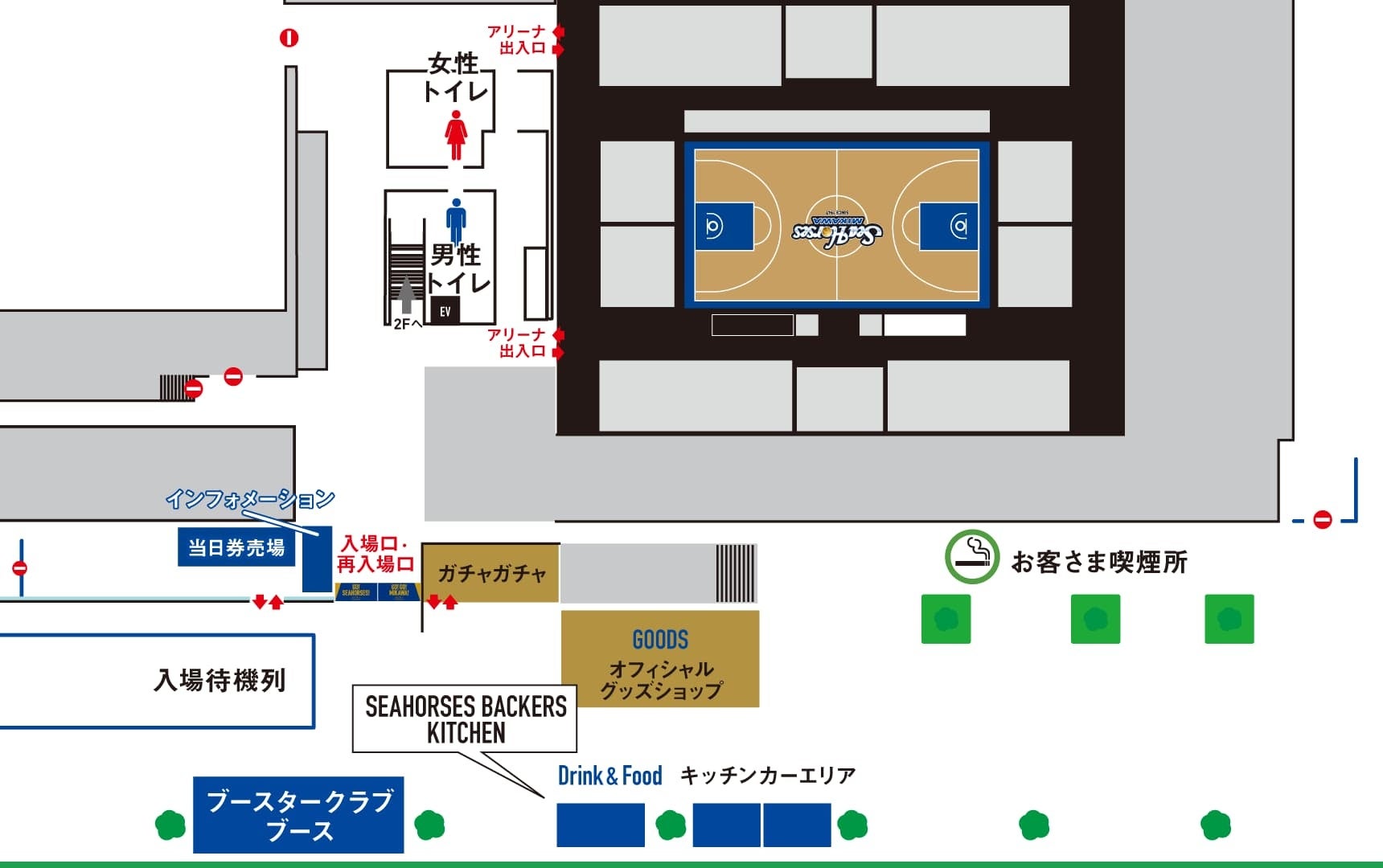 ホームゲーム会場でソフトドリンク・アルコール飲料からシーホース三河オリジナル商品まで多数を取り揃える「SEAHORSES BACKERS KITCHEN」。