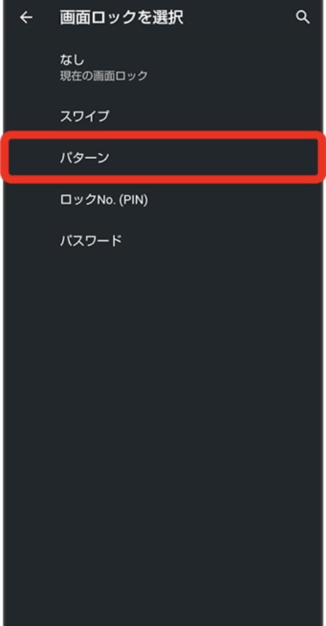 Step2:画面ロックの選択画面で、「パターン」を選択します。