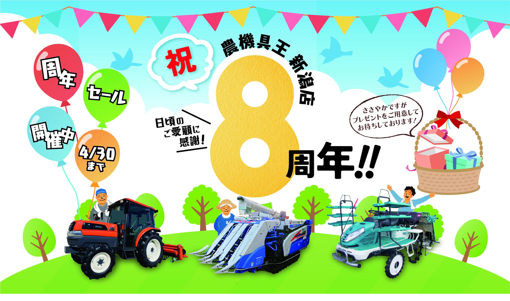 「農機具王 新潟店」地域の生産者様とともに歩んで8周年感謝の気持ちを込めた「周年セール」を4月7日から開催!