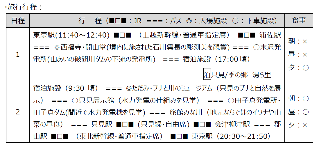・出発日:2026年6月20日(土)~2026年6月21日(日) 1泊2日