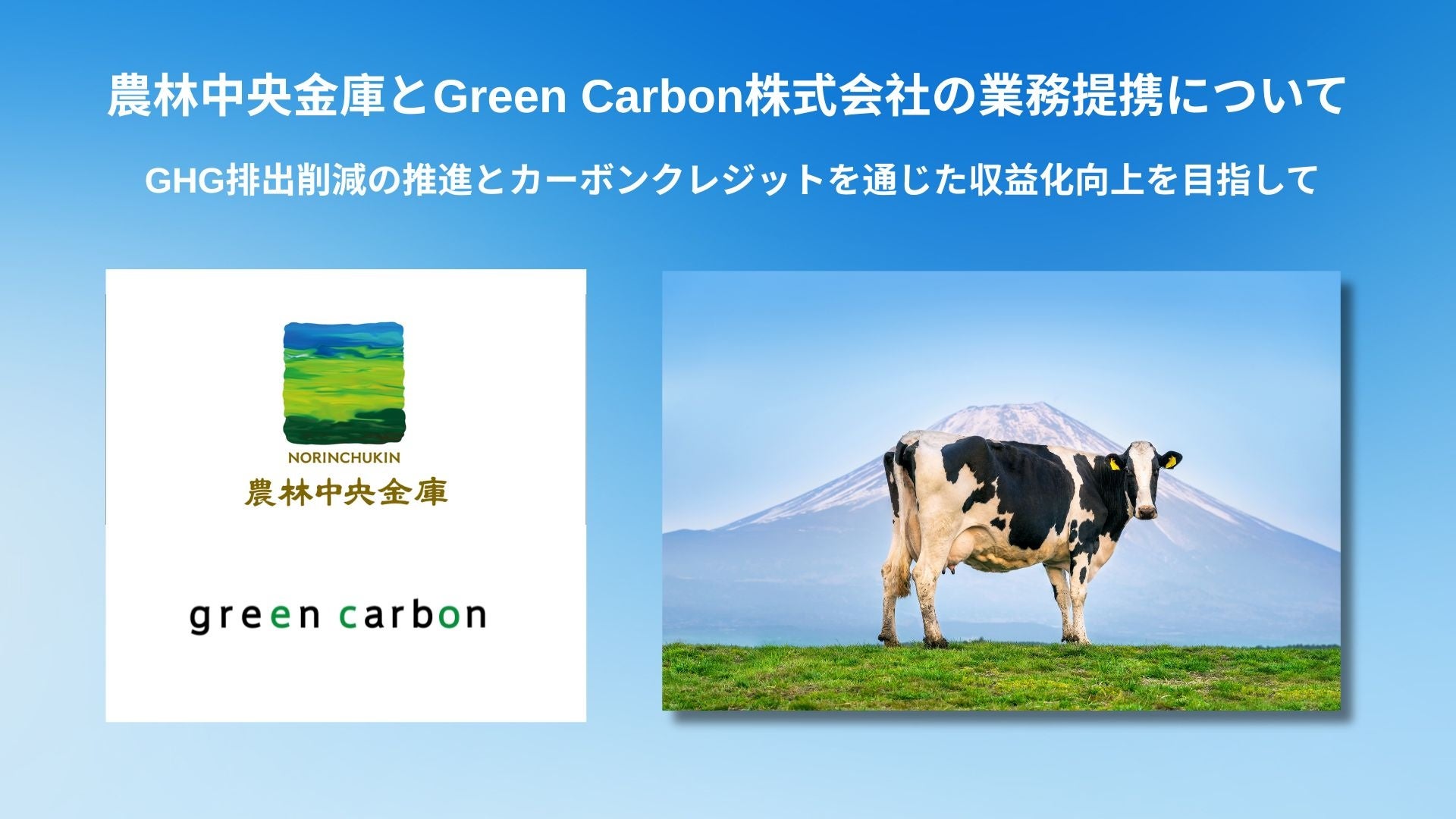 ネイチャーベースのカーボンクレジット創出・販売事業を展開するGreen Carbon株式会社(代表取締役:大北 潤、以下:Green Carbon(グリーンカーボン))は、農林中央金庫(代表理事理事長 北林 太郎、以下:農林中金)と、農業・酪農・畜産分野を中心に自然由来カーボンクレジットの創出支援を通じたGHG(Greenhouse Gas、温室効果ガス)削減の推進と、自然由来のJ-クレジット制度や二国間クレジット制度(JCM*1)を活用したカーボンクレジットによる収益拡大に取り組むことを目的とした業務提携契約(以下、本提携)を締結したことをお知らせします。本提携による取り組みを通じて、Green Carbonと農林中金は、カーボンニュートラル社会の実現に貢献してまいります。