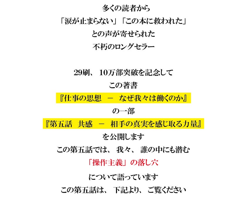 【著書公開】田坂広志学長のロングセラー 『仕事の思想 なぜ我々は働くのか』 が29刷、10万部を突破。毎年春に、多くの人事部が新入社員に配布する不朽の名著。その内容を公開