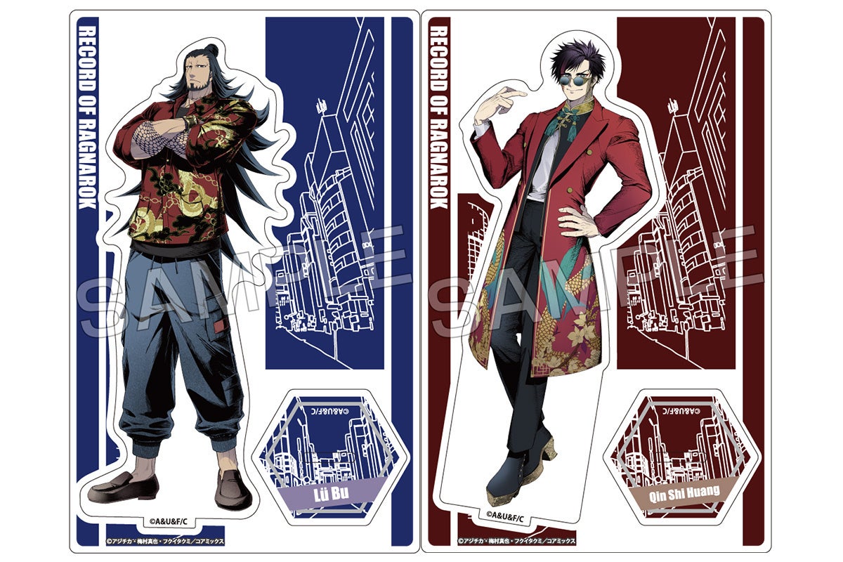 2月1日にコアミックス公式オンラインショップ“ゼノンショップ”で販売を開始した終末のワルキューレ オフショットコレクション「アクリルスタンド 呂布奉先」、終末のワルキューレ オフショットコレクション「アクリルスタンド 始皇帝」がお寺のような場所をバックに2人並んで写真を撮っている。