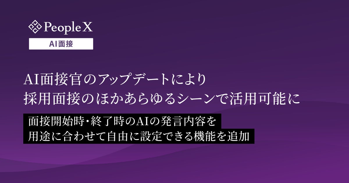 採用から活躍支援まで、AIで人事課題を解決する株式会社PeopleX(本社:東京都新宿区、代表取締役 CEO:橘 大地、以下:当社)は、当社が提供する対話型AI面接サービス「PeopleX AI面接」において、面接開始時・終了時のAIの発言内容を自由に設定できる機能の提供を開始いたしました。これにより、採用面接以外の用途・目的でのAIとの対話を、より最適な形で実現可能となります。