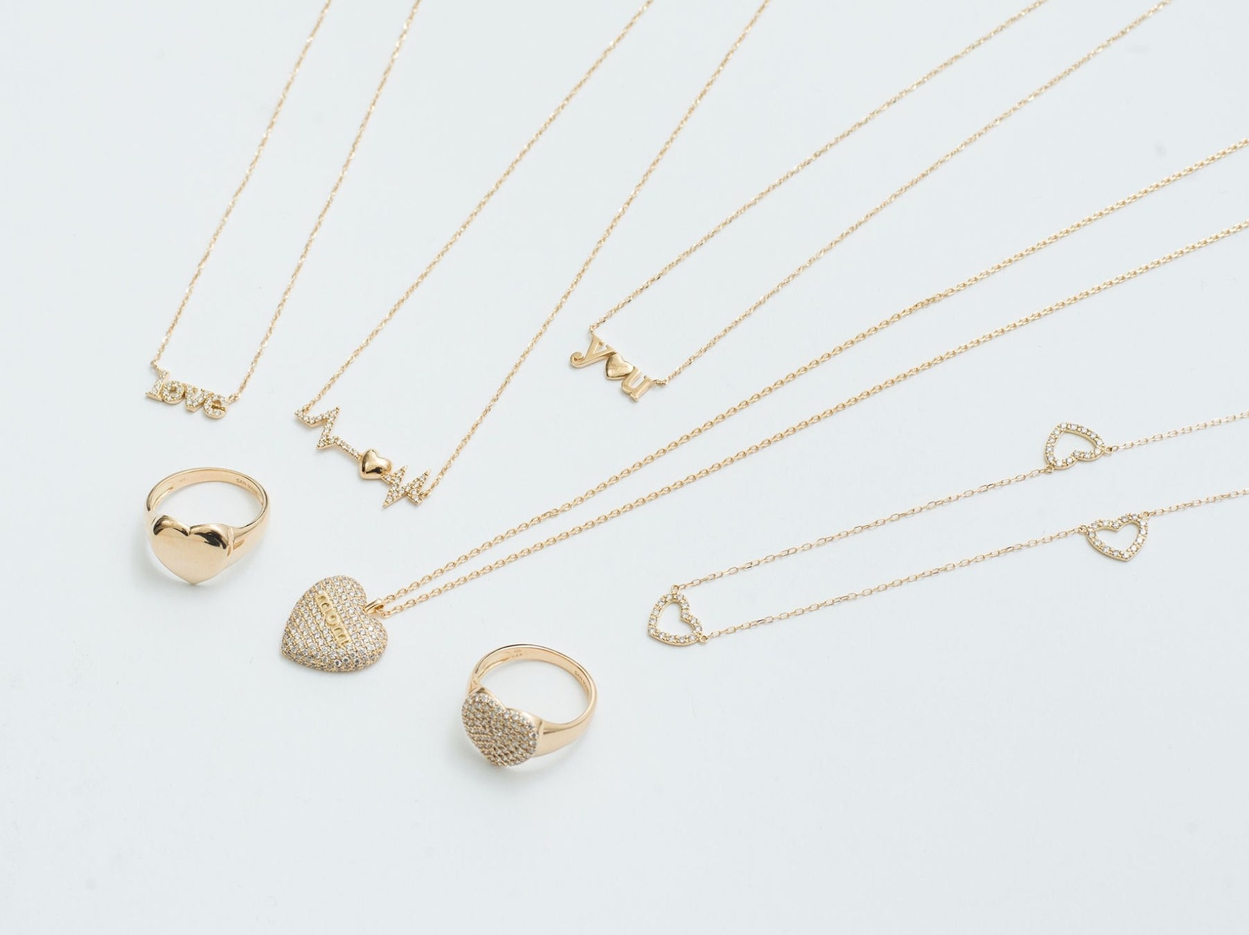 様々な愛を表現するハートモチーフのジュエリーたち、お守りとして身に着けたいイニシャルネックレスなどを展開。その他にも、各店に入荷しない新作ジュエリーのオーダーを承ります。