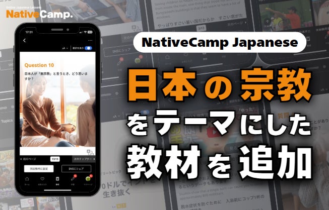 株式会社ネイティブキャンプ(本社:東京都渋谷区、代表取締役社長:谷川国洋)が提供するオンライン日本語会話サービス『Native Camp Japanese』では、このたび、このたび、人気教材「デイリートピック」に”日本の宗教”をテーマにした教材を追加しました。
