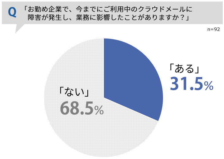 - 全体では31%が業務に影響するクラウドメール障害の経験がある