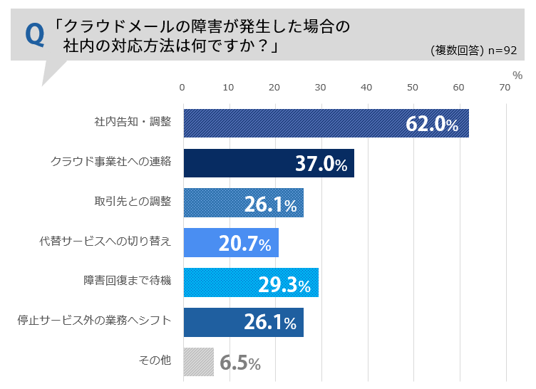 31%がクラウドメール障害で“業務への支障”を経験 5割がBCP対策必須と回答する一方で「障害回復まで待機する」と答える層も