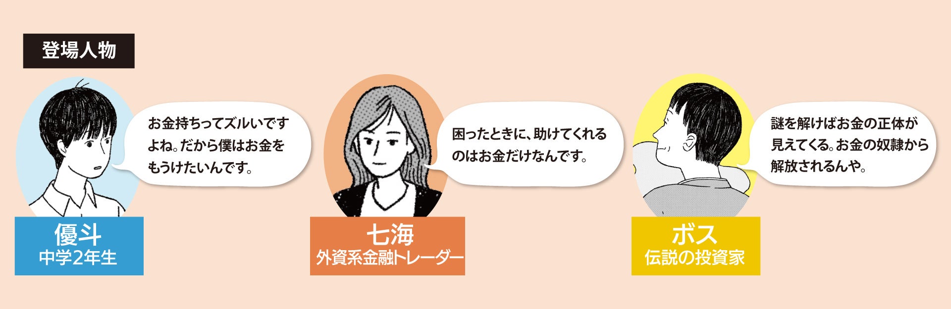 主人公・佐久間優斗は中学2年生。両親は地元で小さなトンカツ屋を営んでおり、裕福な家庭ではない。将来の夢は見つかっていないが、たくさんお金を稼いで、みんなから評価される仕事をしたいと考えている。大学進学を控えた、歳の離れた兄がいる。