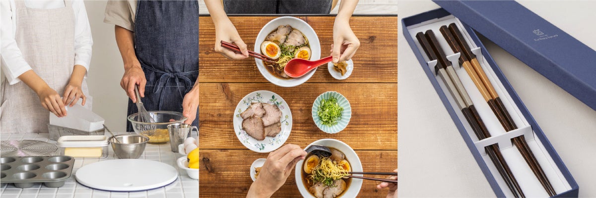 そのほか、特集「夫婦のちょっといい時間」では、夫婦ふたりでお菓子作りやごちそうラーメン作りを楽しむキッチンツールや両親へ贈りたい箸セットなどもご紹介しています。