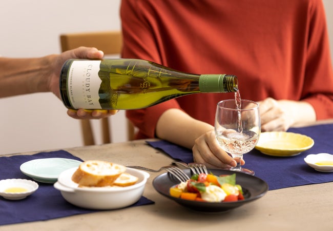お気に入りのワインの中から、栗原はるみがふだんからよく飲み、白ワイン好きの方へ贈ることの多い、栗原家の定番ワイン「クラウディー ベイ ソーヴィニヨン ブラン 2022」を、ワイングラスとセットでご用意しました。