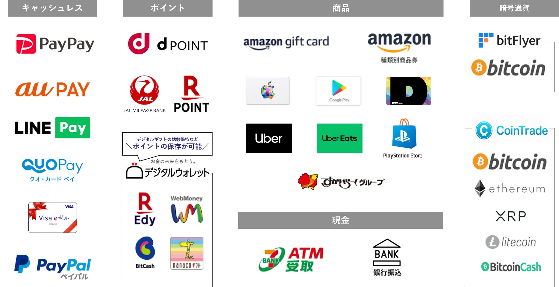 キャンペーンの景品や、ポイント交換、キャッシュバック、給与や業務委託報酬の振込代行
