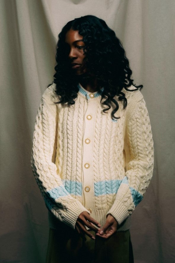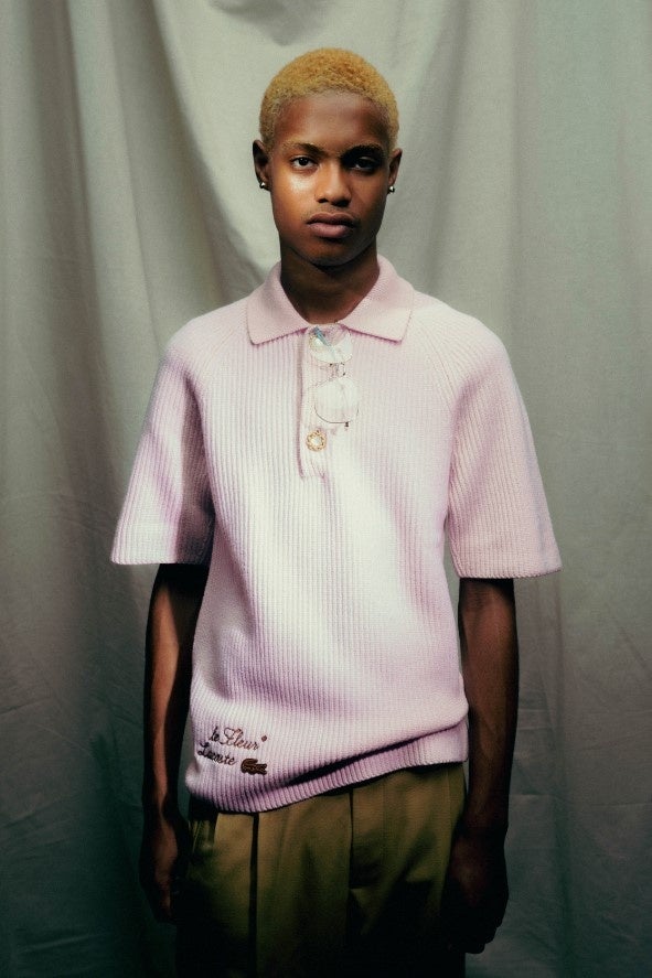このコレクションは、ラコステを世界的に有名にしたクラシックなデザインをシームレスに取り入れながら、le FLEUR*の独特な世界観を反映しています。ノースリーブのVネックセーター、ケーブルニットカーディガン、カーディガンステッチのポロシャツなどのニットウェア、le FLEUR*とラコステのコラボデザインのワニロゴパッチが付いたトラディショナルな半袖ポロシャツ、ハリントンジャカードジャケット、パンツ、プリーツスカートのツイルジャカードセット、ウール素材のジャケットとポリエステル・レーヨン素材のパンツ、スカートのセットなどがハイライトです。また、カレッジTシャツ、ストライプとソリッドのソックス、スターリングシルバーのパールネックレスとブレスレットにゴールドメッキを施しコラボデザインのワニロゴプレートをあしらったジュエリーなどの定番アイテムで締めくくられます。