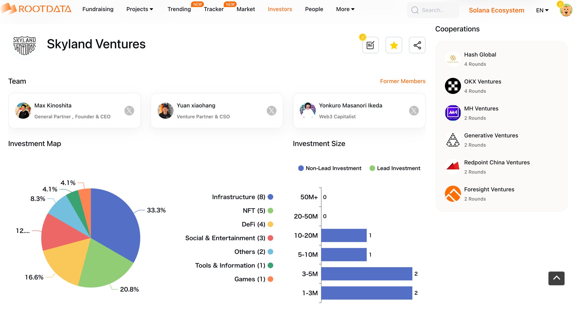 I am very pleased to receive investment from Skyland Ventures. RootData is a Web3 asset data platform that is the first to encapsulate on-chain and off-chain data of Web3 assets. The data is more structured and readable. Currently, RootData processes more than 3.4 million transactions per month. Search and query requests. With the help of Skyland Ventures, we are looking forward to focusing on the Japanese market and providing Japanese Web3 investors with rich data information to help detect trading signals in advance.