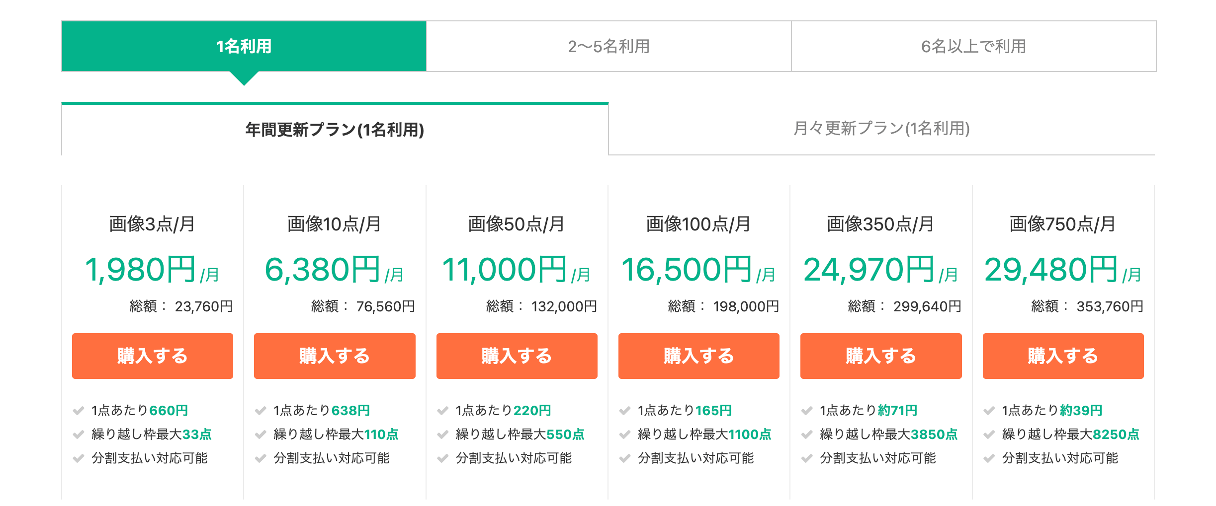 年間更新プラン(1年)/月々更新プラン(1ヶ月)