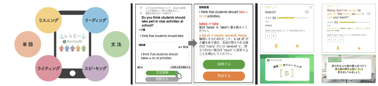 ・6技能全てを網羅した英語学習アプリ「レシピー」を利用した総合的な英語力の向上・AIにより、学習履歴や他学習者の成果の出た学習プロセスを分析し、一人一人に合わた日々の学習カリキュラムを生成