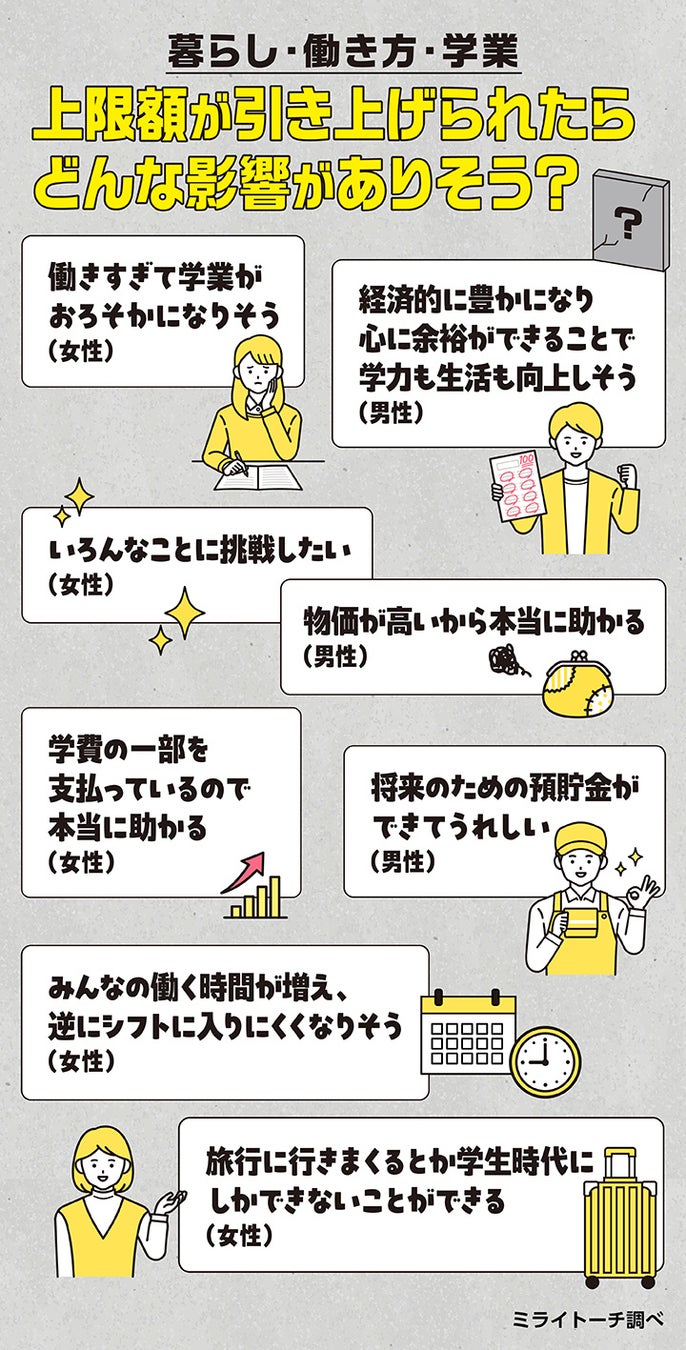 ◾️「103万円の壁」の上限額が引き上げられたら学生生活はどうなる?